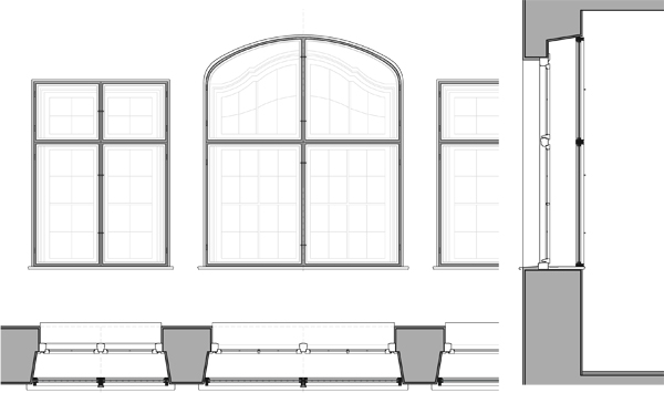 Das historische Treppenhausfenster, ursprünglich als Einfachfenster gebaut, wird zusätzlich zu einer generellen Überarbeitung zukünftig um ein innenliegendes Fensterelement ergänzt, und dadurch zu einem Kastenfenster umgebaut. Der neue dichtschließende Innenflügel wird aus schlanken Winkelprofilen aus Stahl erstellt. Die hinzugefügte Stahl-/Glaskonstruktion wird mit ihrem filigranen Erscheinungsbild maximal möglich zurückgenommen und stärkt damit das Bild des historischen Fensters. Durch die Art der Ausführung als Kastenfenster erfährt das große Fensterelement eine erhebliche energetische Optimierung.