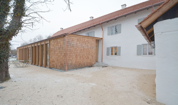 Nach Abbruch der Zu- und Anbauten wurde zum See hin ein hölzerner Ausstellungraum ergänzt., der in Verbindung mit dem neuen Klosterladen das kulturelle Angebot von Kloster Seeon abrundet.