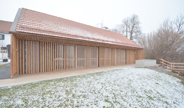 In unmittelbarer Nachbarschaft zu den historischen Gebäuden am Zugang zur Klosterrinsel ergänzt der bewusst sehr einfach gestaltete Neubau für die Fachberatung Fischerei und Imkerei das Ensemble. Die gläserne Südseite lässt sich mit hölzernen Läden komplett verschließen und verstärkt den Charakter als untergeordnetes Nebengebäude.