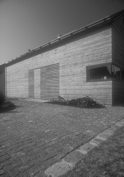 Das kompakte Wohnhaus mit Satteldach verweist mit seinem einseitigen Dachüberstand auf die traditionelle, im nördlichen Oberbayern verbreitete Bauform des „Gretdaches“ und definiert damit einen linearen Raum zwischen Innen und Außen, welcher als geschützter Terrassenbereich genutzt werden kann. Die im Dachgeschoss befindlichen Räume werden ausschließlich über die Giebelfassaden belichtet, in die sonst ungestörte Dachfläche wird auf der Nordseite ein - aus einer ungeteilten Glasfläche bestehendes - Oberlicht eingeschnitten, das im Dachraum den Blick zum Himmel ungehindert freigibt.
