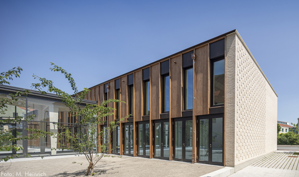 Ein Gemeindehaus, lang und lagernd, für die neuen Räume des Pfarramts, Dekanats und der Gemeinde mit Sälen und Jugendbereich.